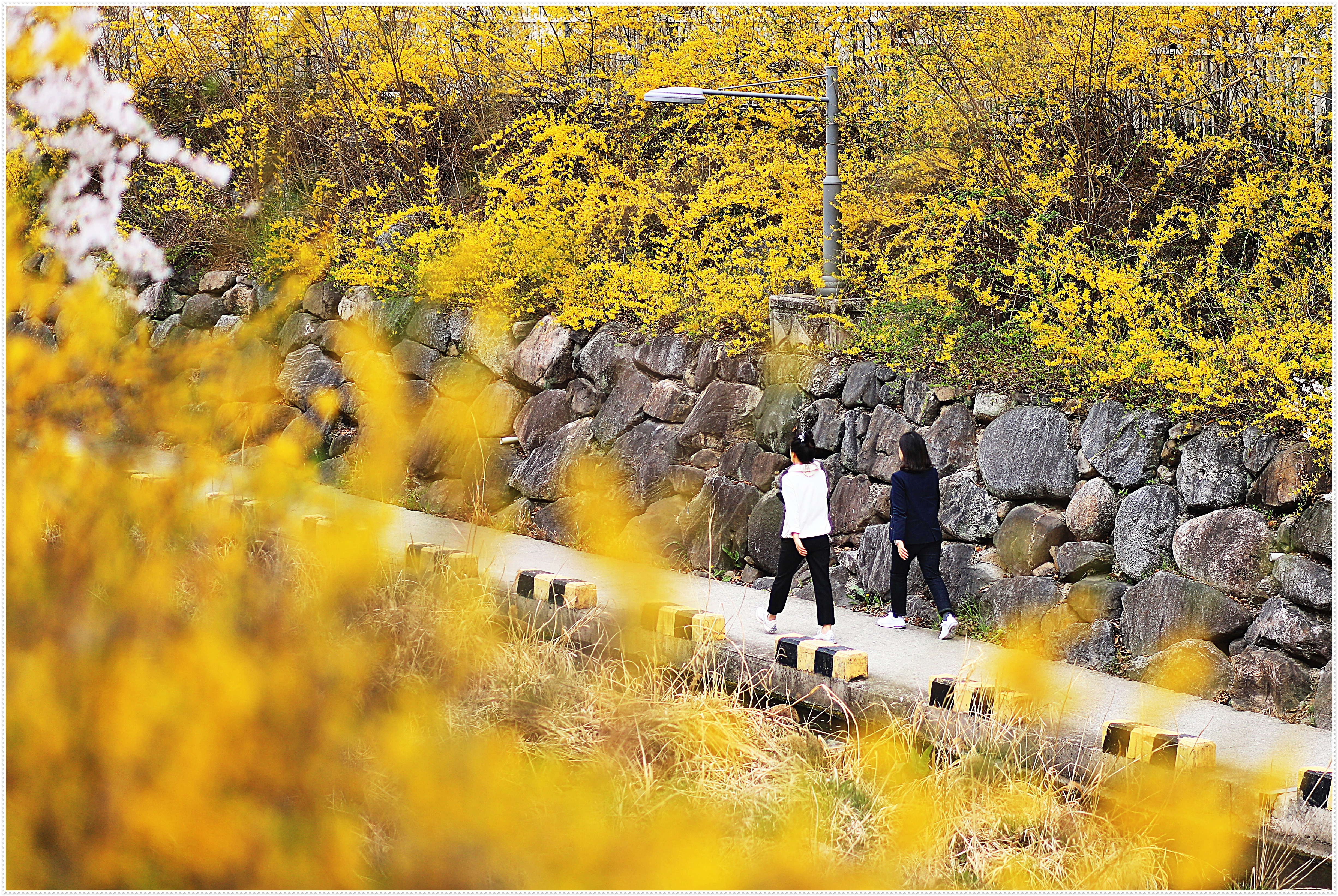 운문사의 늘어진 소나무와 가을의 벼 이삭처럼