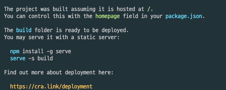 터미널에 serve -s build 를 입력하면 배포 시작