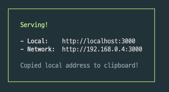 그러나 serve 가 설치되어 있지 않기 때문에 위의 install 명령도 같이 나옵니다.